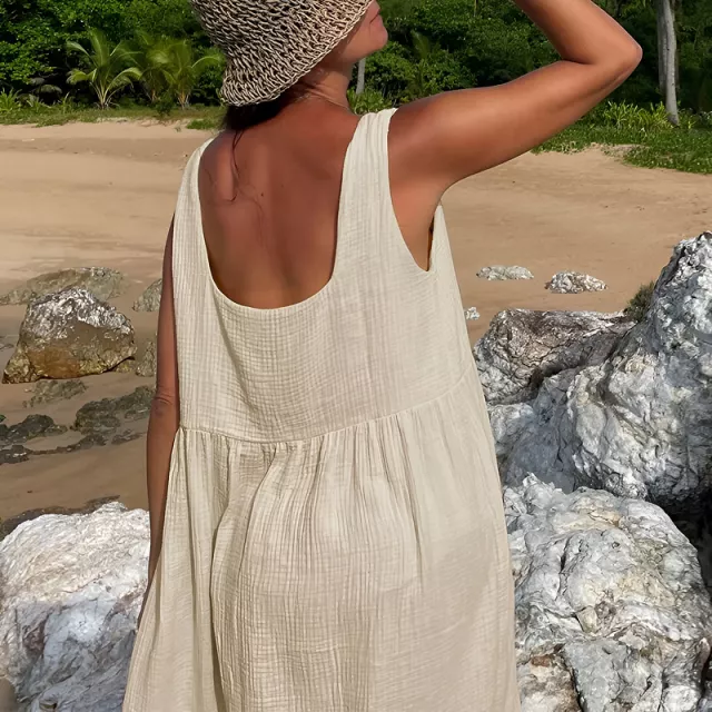 Step into summer with effortless charm in this 100% Cotton Gauze Summer Dress. Designed with a timeless square neckline and a flattering A-line silhouette, this sleeveless, mid-calf dress is the ultimate warm-weather essential. Whether you’re walking along the shore, exploring a new city, or lounging on your patio, this dress offers breathable comfort and style that feels as good as it looks.