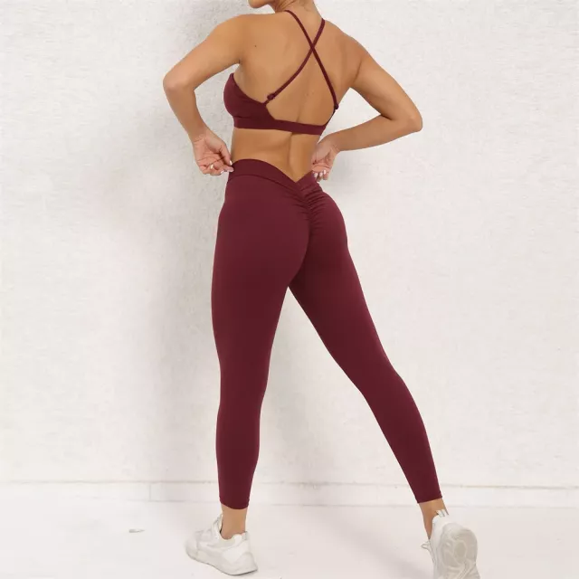 Crafted from a breathable, stretchy blend of nylon and spandex, this gym outfit hugs your body in all the right places. The supportive V-back design enhances your shape while allowing total freedom of movement. The seamless fit and solid color make it easy to mix and match with other workout gear, while the high waistband provides a tummy-smoothing effect that boosts your confidence during every rep and stretch.