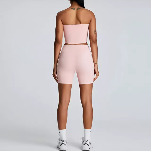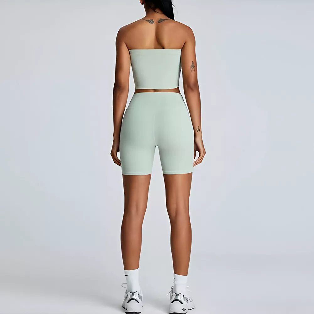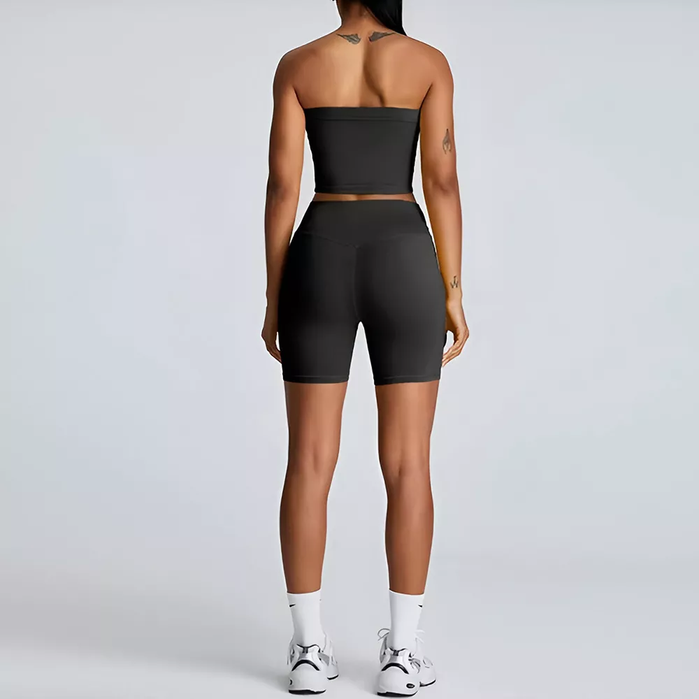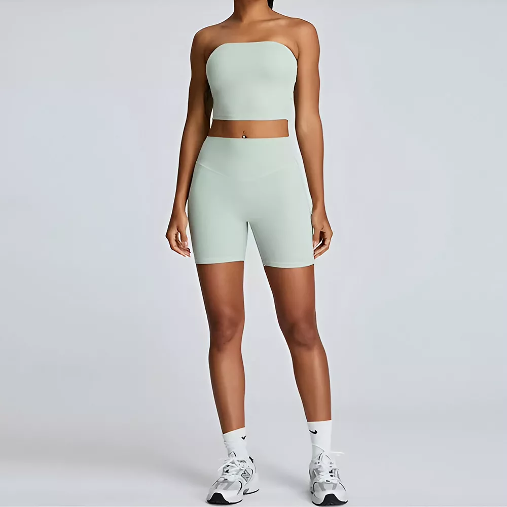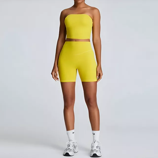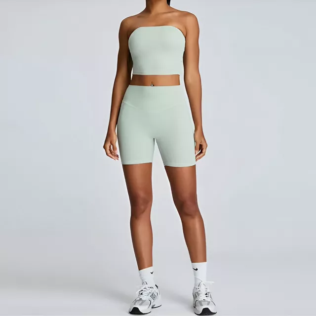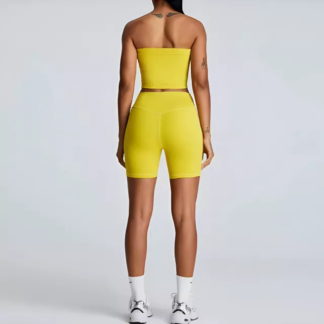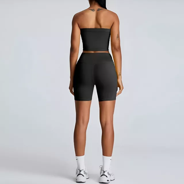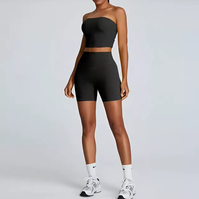 Unleash your inner powerhouse with this stunning 2-piece yoga and workout set designed to move with you. Featuring a sexy strapless sports bra and flattering high waist shorts, this outfit offers both performance and style in one sleek package. Whether you’re heading to a yoga class, crushing a gym session, or enjoying a morning jog, this activewear set is made to keep up with your every move while keeping you feeling confident and supported.
