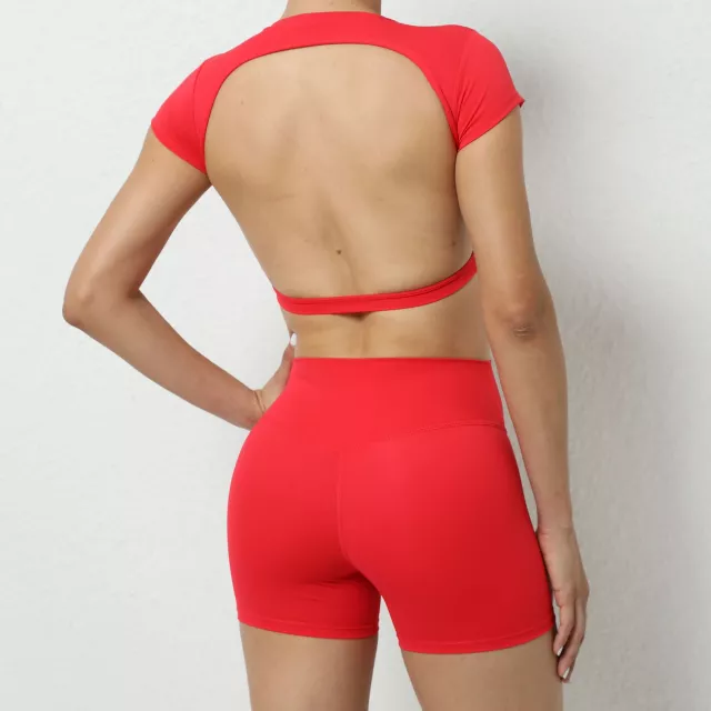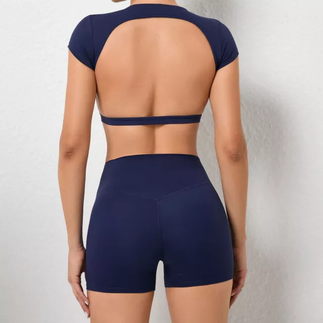 The short-sleeve crop top offers breathable coverage, while the high-waisted shorts provide a flattering, compressive fit that stays in place through every squat, sprint, or sun salutation. Designed with a solid color finish and a smooth, seamless knit, this set looks as good as it feels. The moisture-wicking and quick-drying fabric keeps you cool and dry, even during high-intensity sessions. Soft to the touch, yet strong in performance—this set was made to move with you.