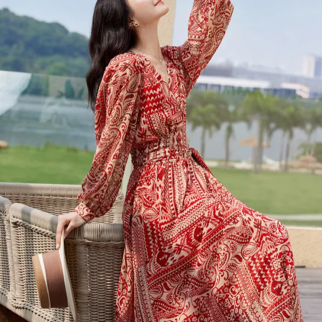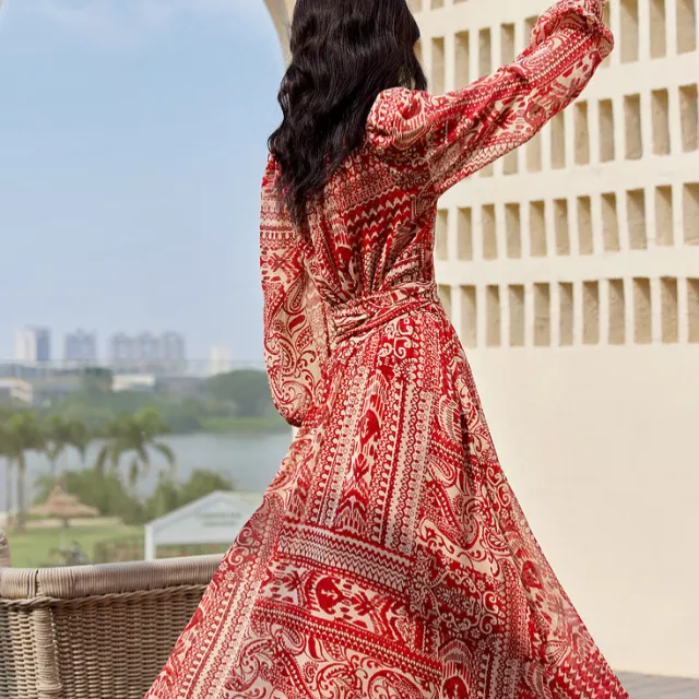 Step into effortless elegance with this stunning Boho Chiffon Midi Dress, designed to bring out your free-spirited charm. Featuring a flattering V-neckline, delicate lantern sleeves, and a beautifully flowing A-line silhouette, this dress is perfect for any occasion. The lightweight chiffon fabric drapes gracefully, offering comfort and movement, making it a must-have for your spring wardrobe.