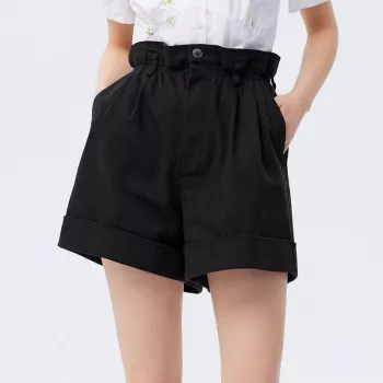 Elastic Waist Blue Striped Pleated Shorts for Women – Casual Wide Leg Style