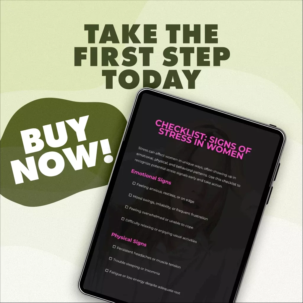 Don’t let stress sneak up on you. Download your copy of the Checklist: Signs of Stress in Women today and start recognizing the signals that matter most. Awareness is the first step toward balance—get your digital guide now and take control of your well-being.