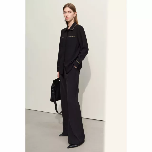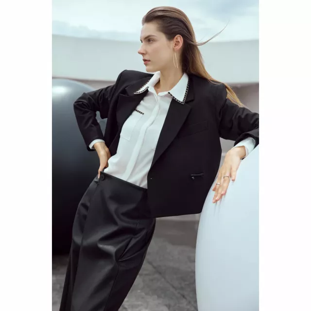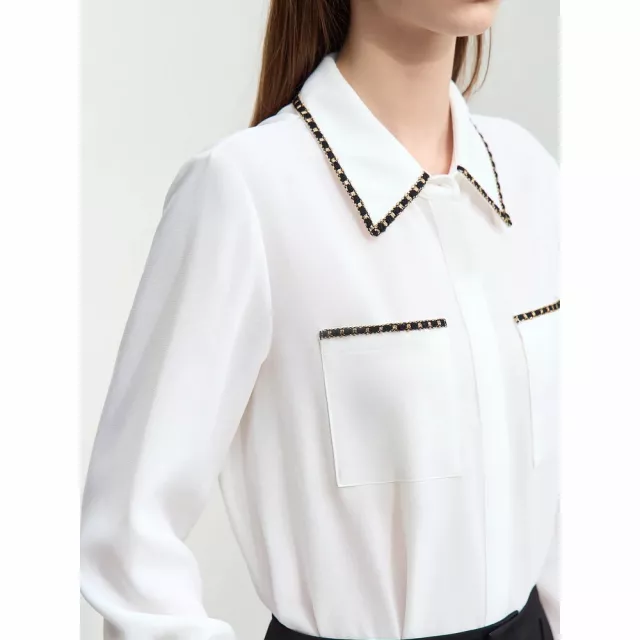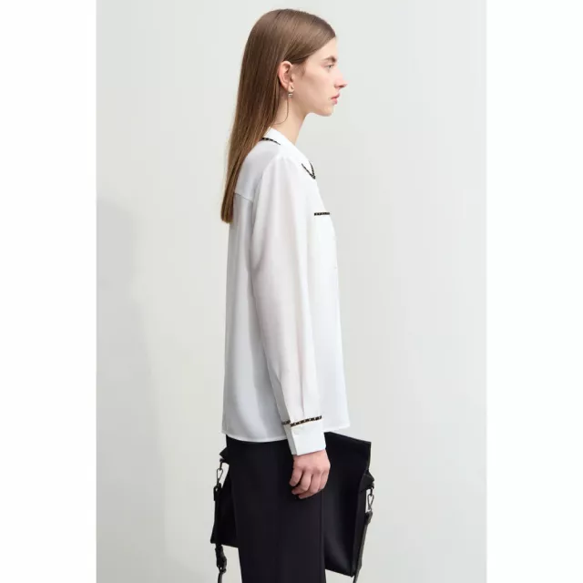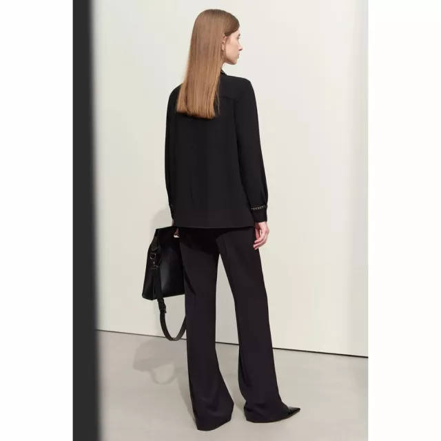 Whether you’re heading to the office, attending a business meeting, or enjoying a casual outing with friends, this blouse adapts to your needs. Its midweight thickness is ideal for the changing weather, providing enough warmth without overheating. The non-stretch fabric keeps the blouse looking crisp and professional all day long.