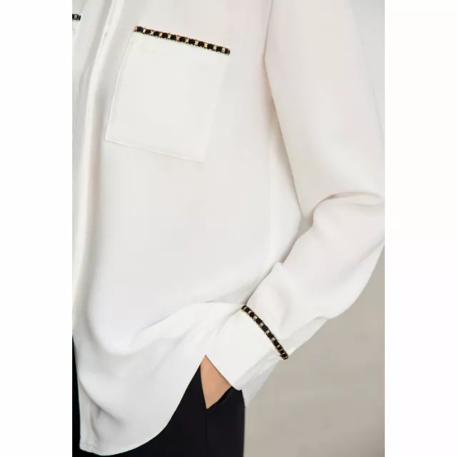 • Unique Design: The spliced decoration and solid pattern set it apart from ordinary blouses, offering a chic and modern appeal.