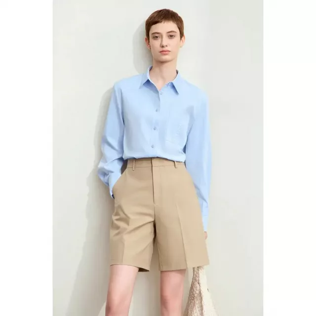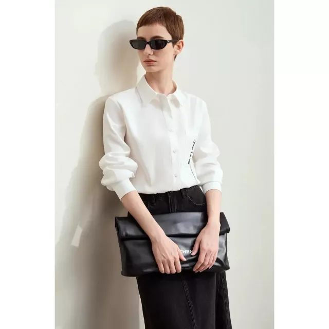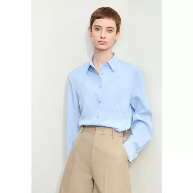 Featuring a classic turn-down collar and a subtle, single-breasted closure, this blouse offers an impeccable fit with its loose design that flatters any body type. The full-length sleeves and mid-weight fabric provide just the right amount of warmth, making it ideal for transitioning between seasons. The highlight of this blouse is the tasteful French letter embroidery, adding a touch of personalized elegance to your wardrobe.