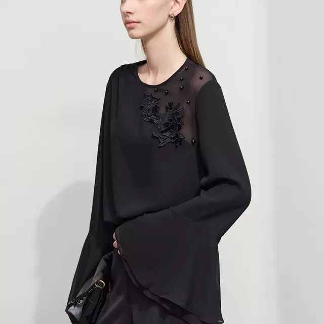 Elevate your wardrobe this spring with a blouse that blends sophistication with a modern twist. The Chiffon Lace Flower Splicing Blouse is an effortlessly stylish addition to your collection, perfect for both casual and office settings. Designed with elegance in mind, this blouse features delicate lace floral splicing and ruffled cuffs that add a touch of femininity to your ensemble.