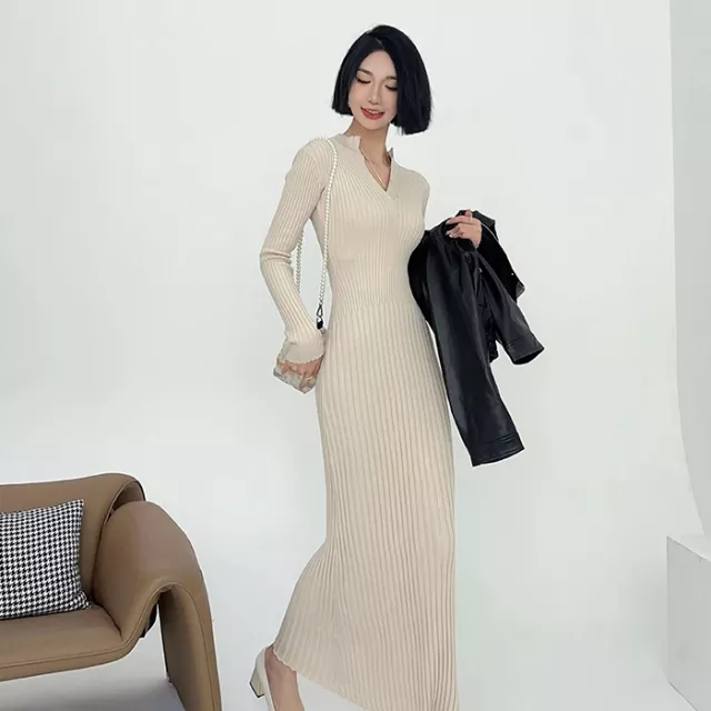 Step into the season with style and sophistication in this Chic V-Neck Knitted Sweater Dress. Designed to hug your figure and highlight your natural beauty, this dress combines a slim-fit silhouette with a flattering empire waistline for an elegant yet comfortable look. Perfect for crisp autumn days or cozy winter evenings, this versatile piece transitions seamlessly from casual outings to chic gatherings. Its ankle-length design and full sleeves provide warmth and style, making it a must-have addition to your wardrobe.