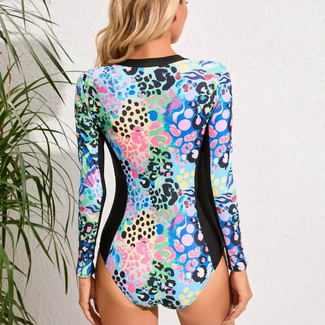 Turn heads while staying protected in this color block floral print long sleeve one-piece swimsuit. Designed with a modern silhouette and a high-waisted fit, this surf-ready suit blends fashion with function to give you a sleek, flattering look at the beach, pool, or hot springs. The bold floral print and stylish color blocking create a fresh, eye-catching aesthetic that sets you apart wherever your swim adventures take you.