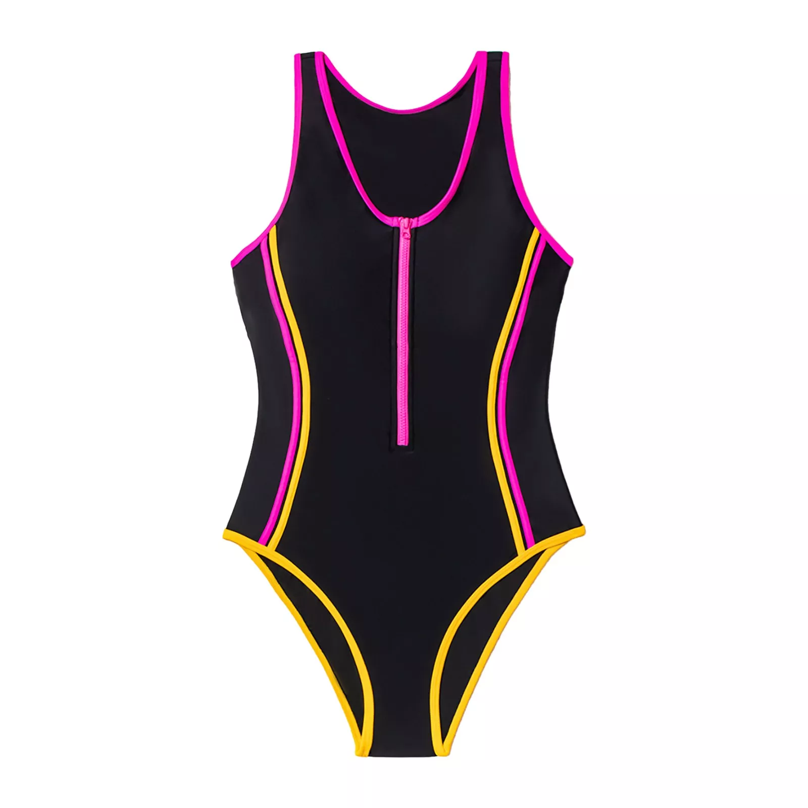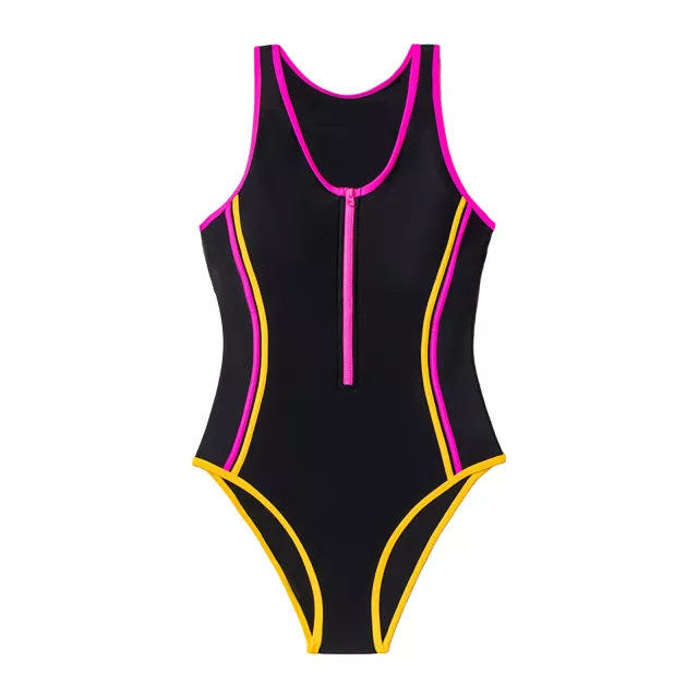 Unlike basic swimsuits, this piece combines bold color contrast, functional design, and high-quality stretch fabric for a look that’s equal parts performance and fashion. The front zipper adds a sporty edge and a touch of flirtation, making it a standout option for the modern woman who does it all—and wants to look good doing it.
