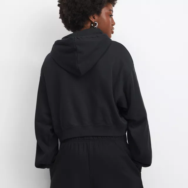 Crafted with an optimal blend of 80% cotton and 20% polyester, the fabric feels soft against the skin while offering durability and breathability. The timeless black color makes it easy to pair with anything in your wardrobe, from jeans to leggings. Featuring long sleeves, a classic round neckline, and a relaxed hood, this sweatshirt is designed to move with you, offering just the right amount of warmth without feeling heavy.