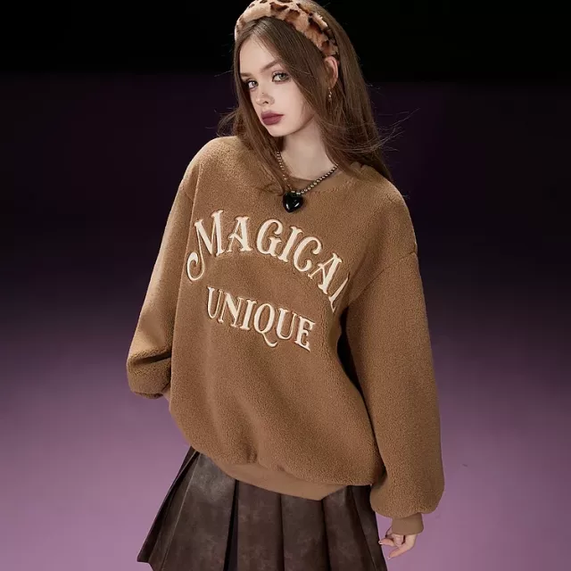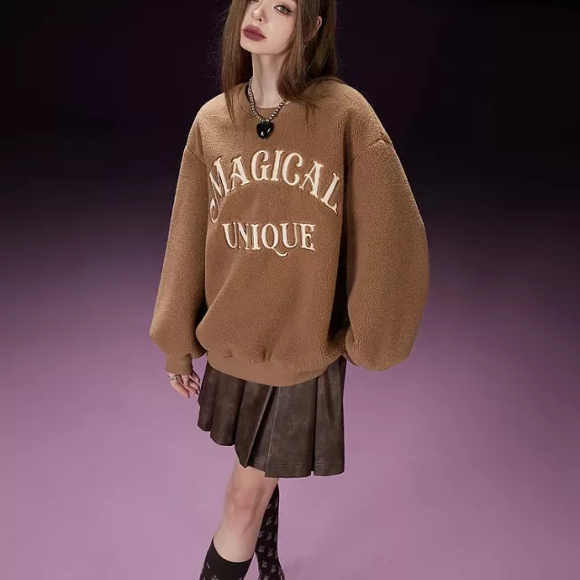 This fleece pullover is more than just a sweatshirt; it’s a wardrobe essential for the cooler months. The soft, cozy fabric feels luxurious against your skin, and the relaxed, loose fit offers both comfort and style. Whether you’re heading to a coffee date or just relaxing at home, this top ensures you look and feel your best. Plus, the playful patch designs make it stand out from the crowd, adding personality to your casual looks.