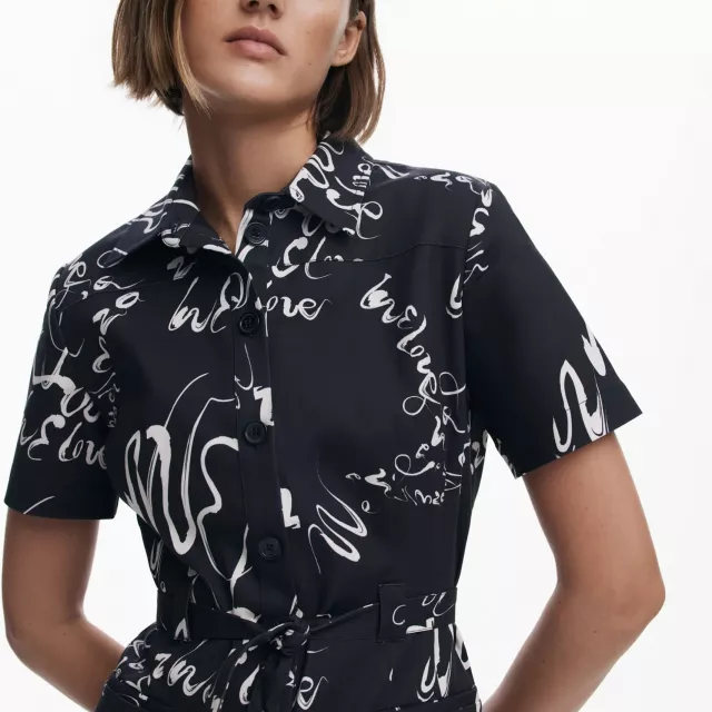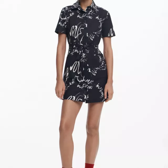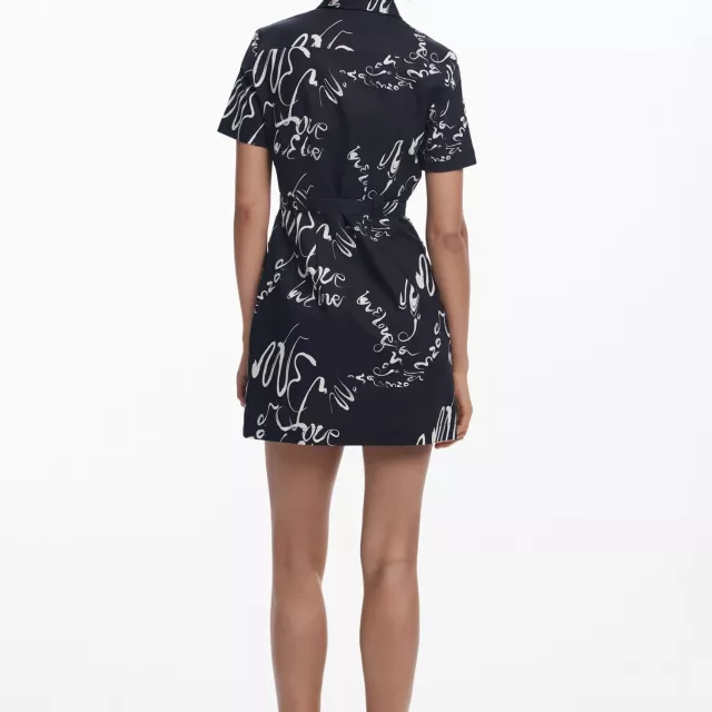 Desigual Women’s Black Printed Dress with Boat Neck and Classic Collar
