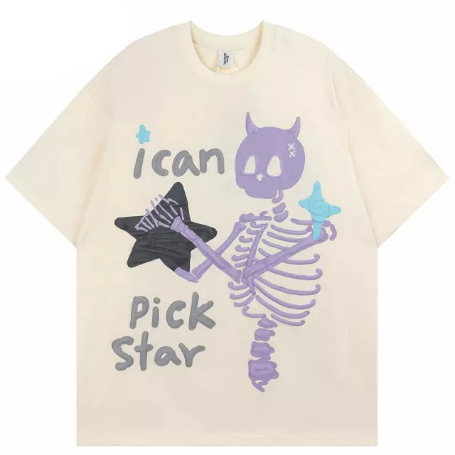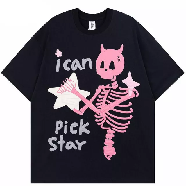 With a classic O-neck collar and short sleeves, this Harajuku-inspired T-shirt offers both comfort and style. The breathable fabric ensures that you stay cool even in the warmest weather, making it your go-to choice for hot days. The skull and skeleton print add a rebellious edge to your outfit, perfect for anyone who loves standing out and expressing their individuality.