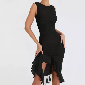 Ruffled V-Neck Sleeveless Mini Dress with Backless Detail for Women