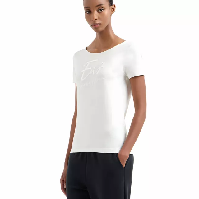 If you’re looking for that one wardrobe piece that always works, this is it. The EA7 Women’s White Cotton T-Shirt is a must-have for any woman who values both style and ease. Perfect for layering, pairing, or standing on its own, it’s the simple piece that brings your whole look together.