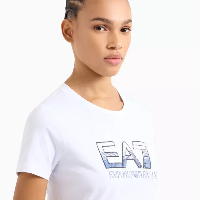 This EA7 t-shirt is more than just a basic tee—it’s a statement of modern elegance. The combination of a premium cotton blend and a stylish print creates a fashionable yet relaxed feel. Designed for women who appreciate both comfort and style, this piece adds a luxurious touch to any casual outfit.