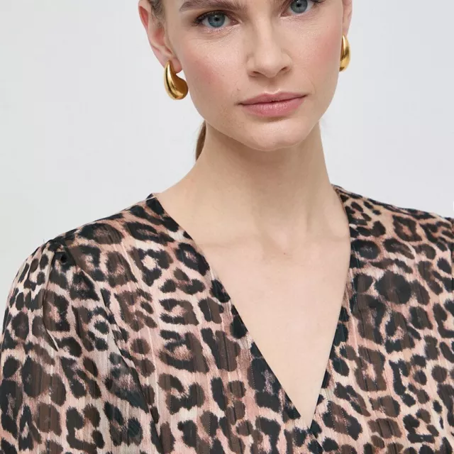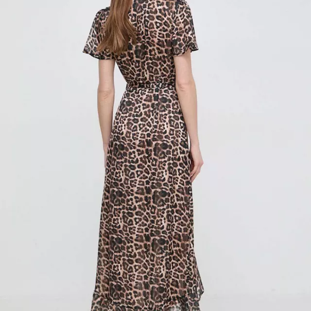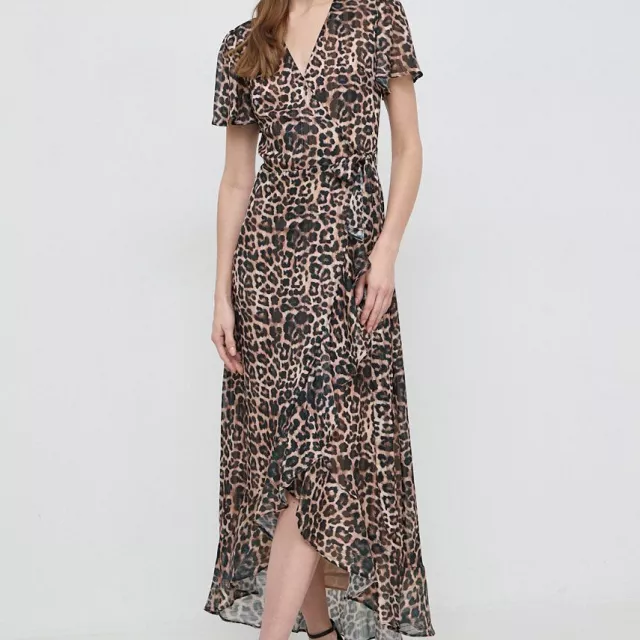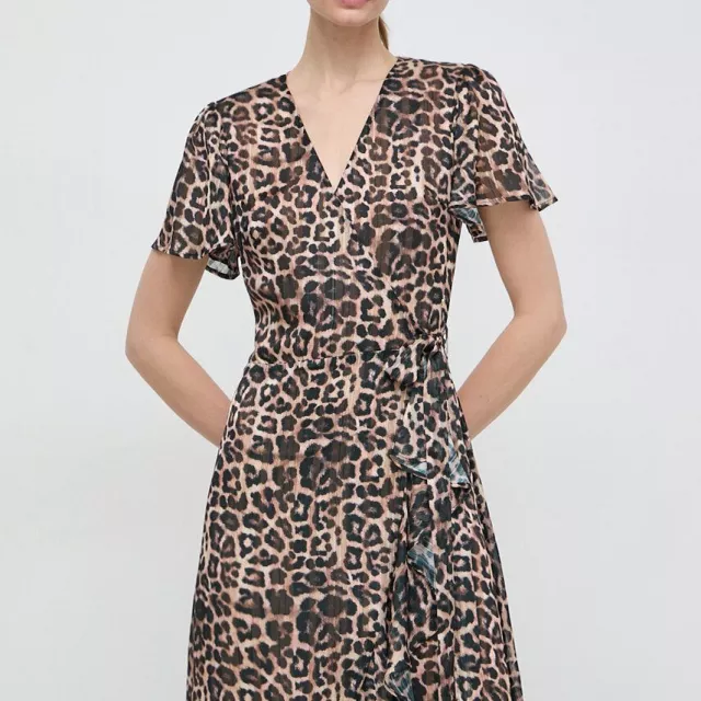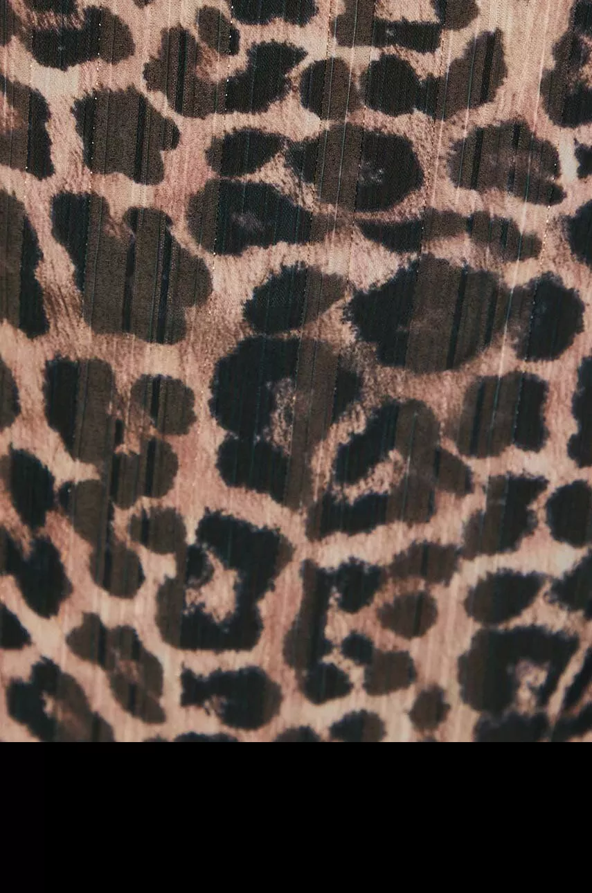Crafted from shimmering Lurex chiffon, the fabric catches the light beautifully, creating a soft, ethereal glow with every move you make. The flattering fit and flare silhouette hugs the waist and flows effortlessly over the hips, offering comfort and style in one stunning package. A feminine V-neckline adds a touch of allure, while the delicate short sleeves and playful ruffle embellishments bring charm and grace to the look. The adjustable wrap-up fastening allows you to find the perfect fit and shape for your body.