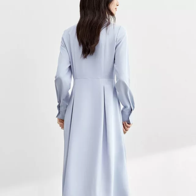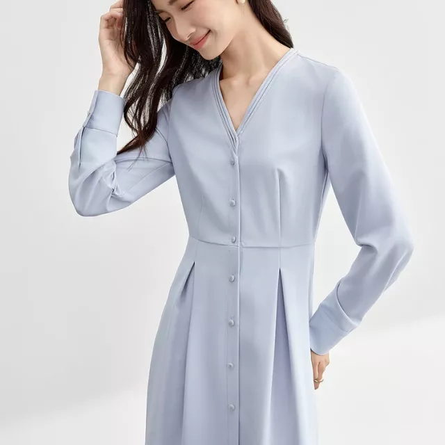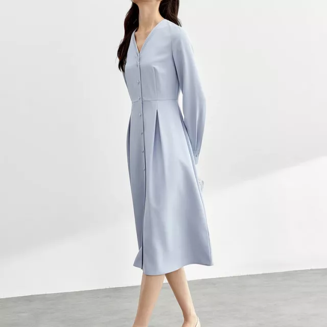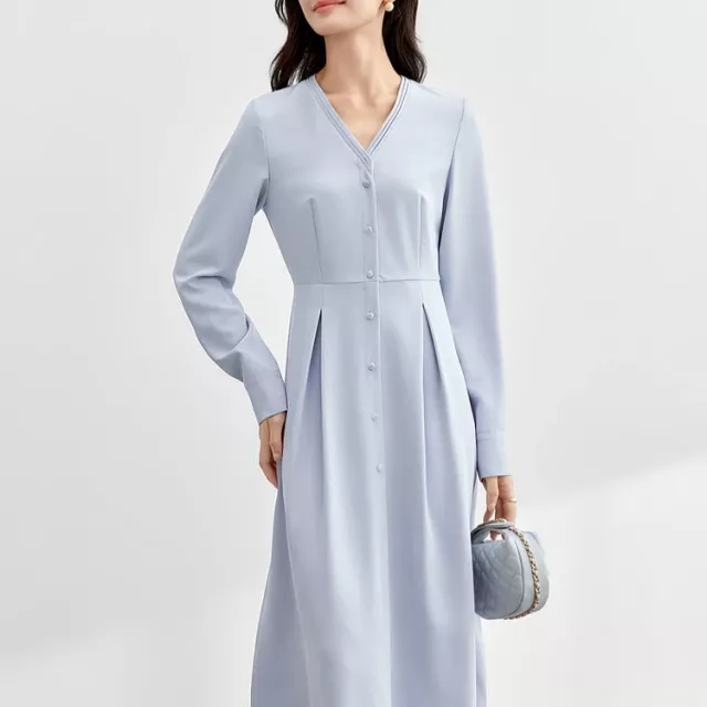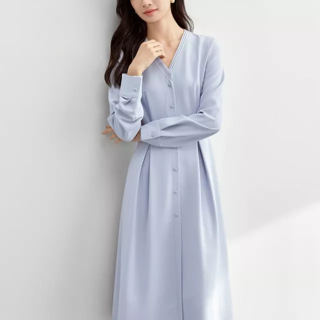 Step into effortless sophistication with this stunning A-line shirt dress, designed for modern women who value style, comfort, and versatility. Crafted in a light blue hue, this midi dress exudes grace and professionalism, making it the perfect choice for office wear, business meetings, or stylish outings. The classic V-neckline enhances your silhouette, while the long sleeves and flowing A-line fit provide a refined yet relaxed feel.