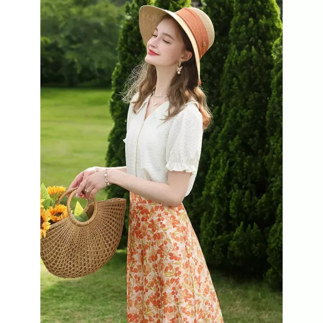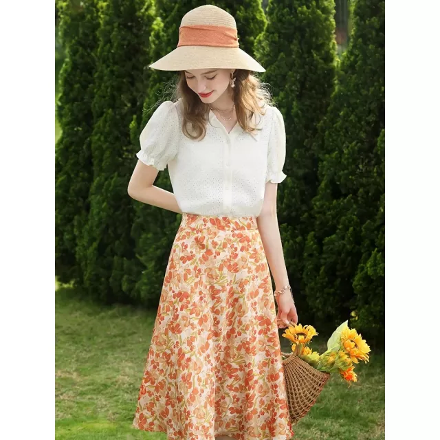 Whether you’re attending a business meeting or enjoying a weekend brunch with friends, these shirts ensure you look chic and feel confident. The puff short sleeves and V-neck collar enhance the feminine charm, while the midweight fabric makes them suitable for summer wear.