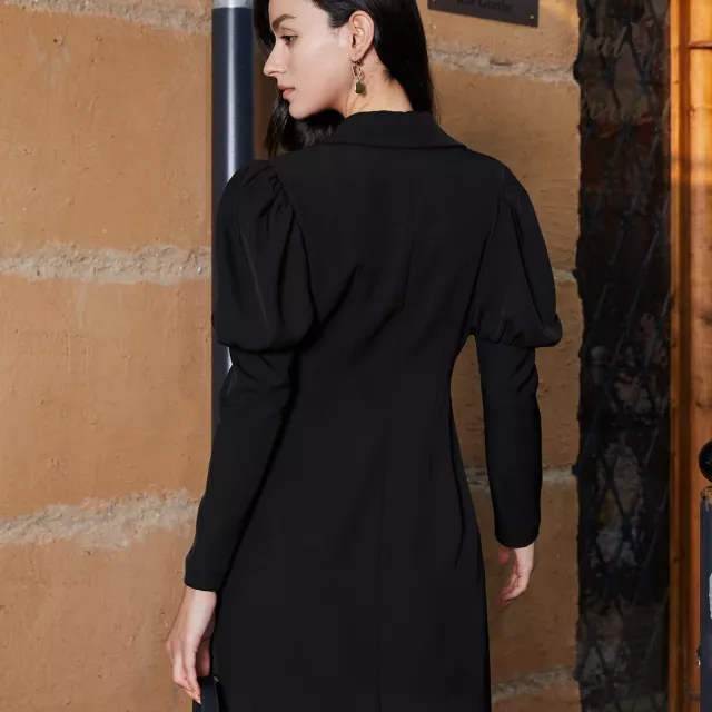Whether you’re attending a boardroom meeting or enjoying an elegant dinner date, this suit dress is your go-to piece. Its minimalist black design pairs easily with heels, boots, or statement accessories for endless styling options.