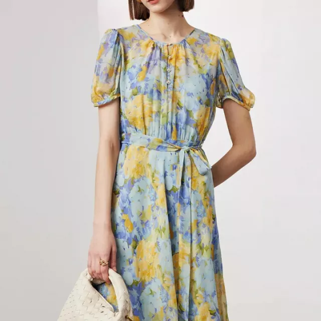 Step into effortless elegance with this 100% real silk floral maxi dress, designed to keep you stylish and comfortable all summer long. The lightweight, breathable mulberry silk drapes beautifully, offering a luxurious feel against your skin. Featuring a flattering A-line silhouette and an eye-catching floral print, this dress is a must-have for your warm-weather wardrobe.