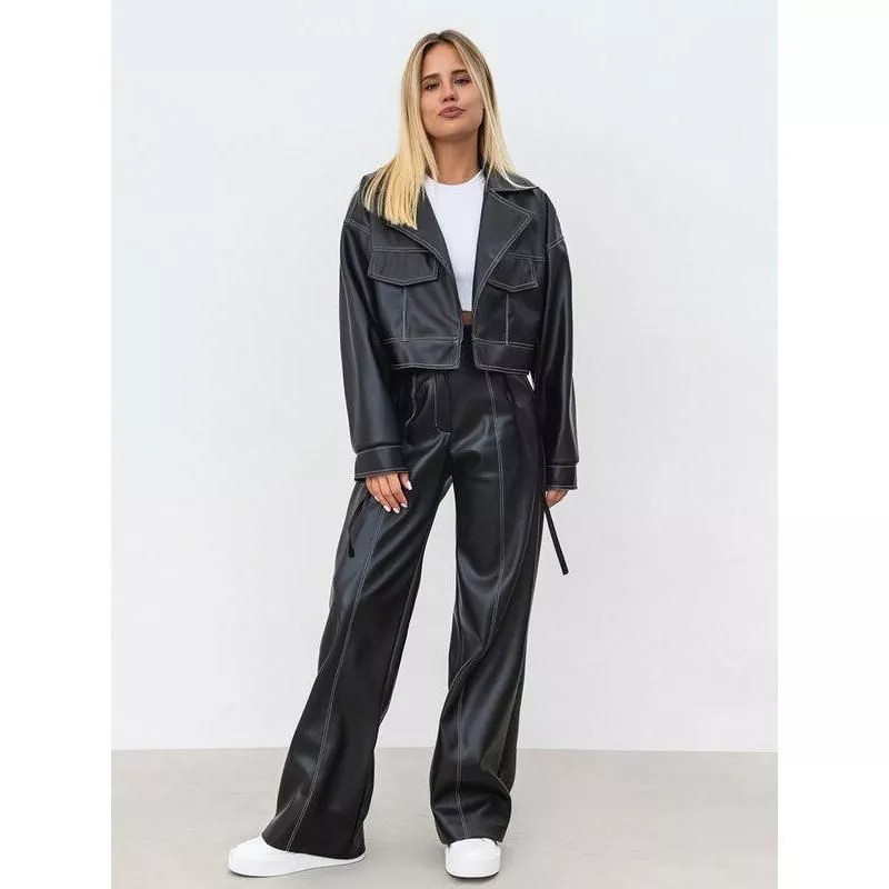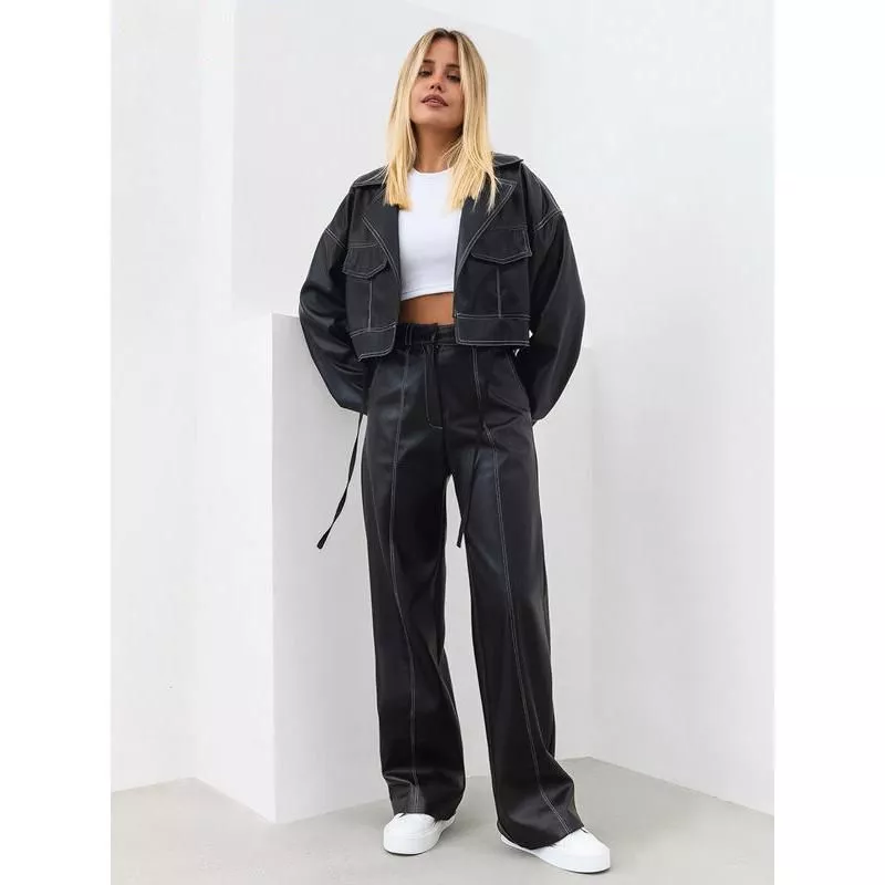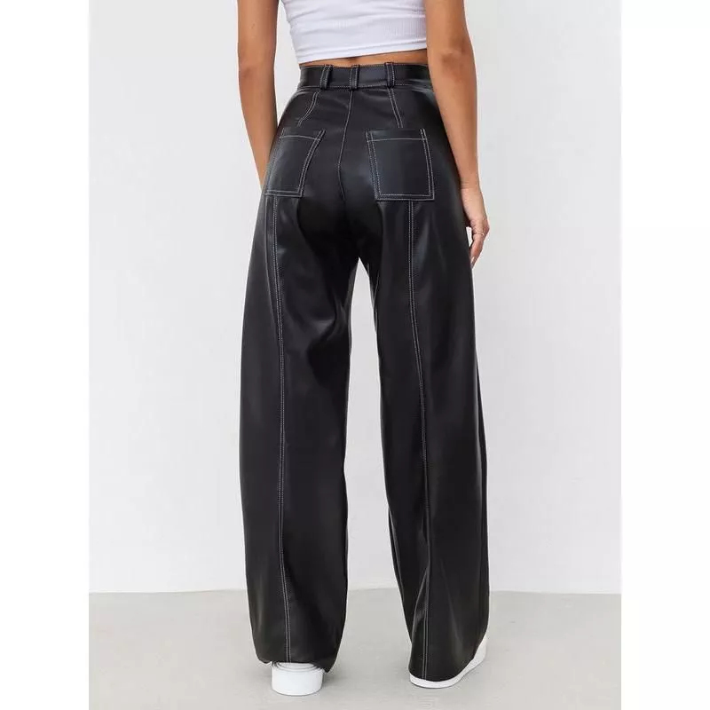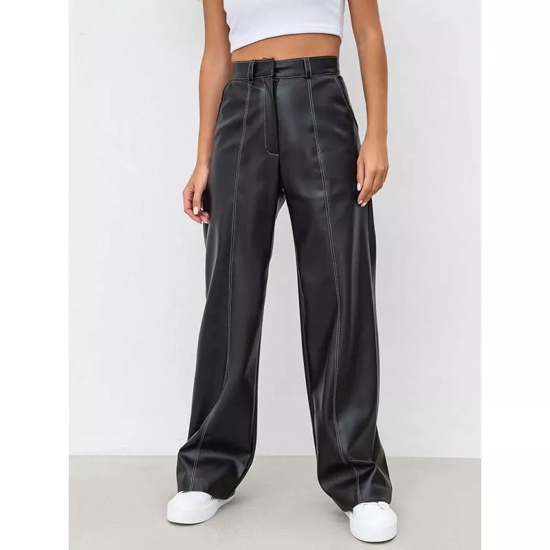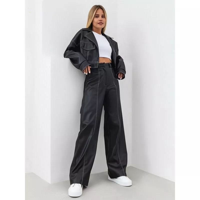 Our trousers stand out for their blend of style and practicality. The high waist design not only offers a flattering silhouette but also provides comfort for all-day wear. The solid black color ensures easy pairing with a wide range of tops, making them a versatile piece in your wardrobe. With no additional decorations, their simplicity is their strength, allowing you to accessorize as you please. Made in Guangdong, these trousers reflect both quality and fashion-forward design.