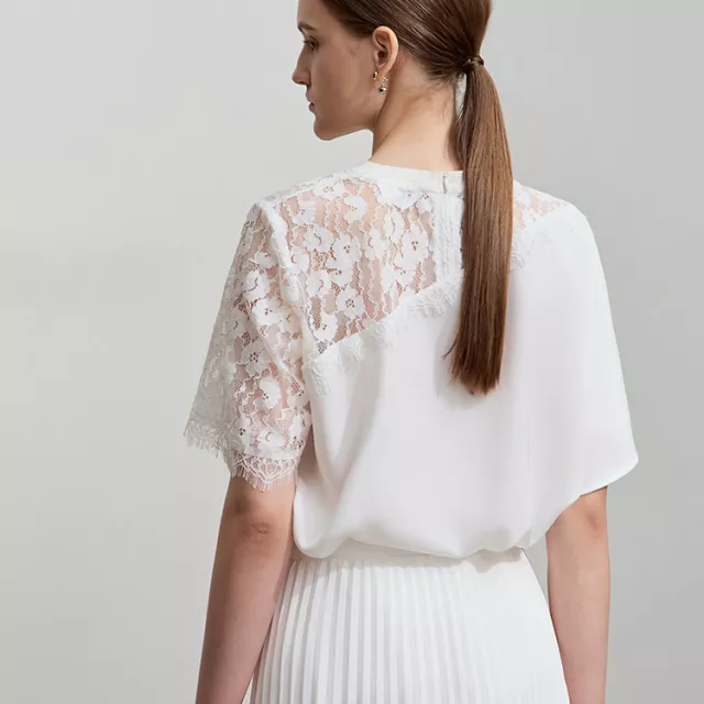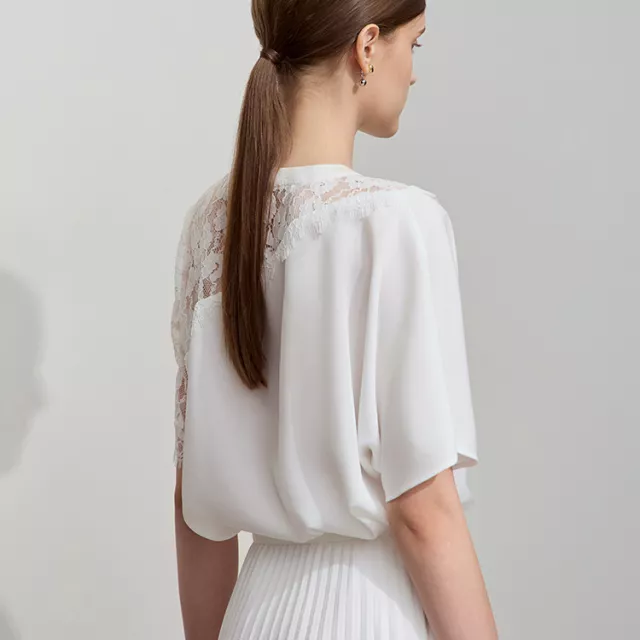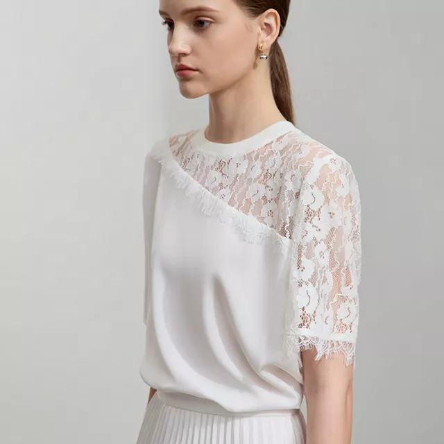 Step into sophistication with this Minimalist Hollow-Out Lace Chiffon Blouse, designed for the modern woman who appreciates elegance and style. The delicate slant shoulder design adds a subtle touch of allure, while the intricate lace detailing exudes femininity. Made from lightweight chiffon, this top is a breathable and stylish choice for any occasion.