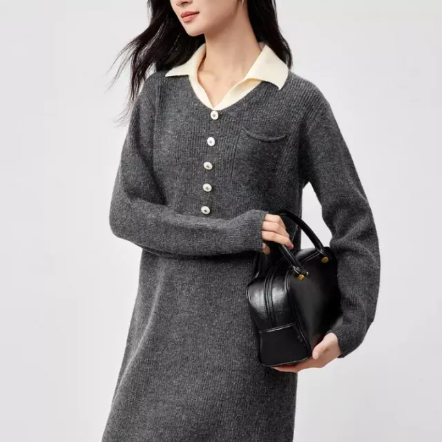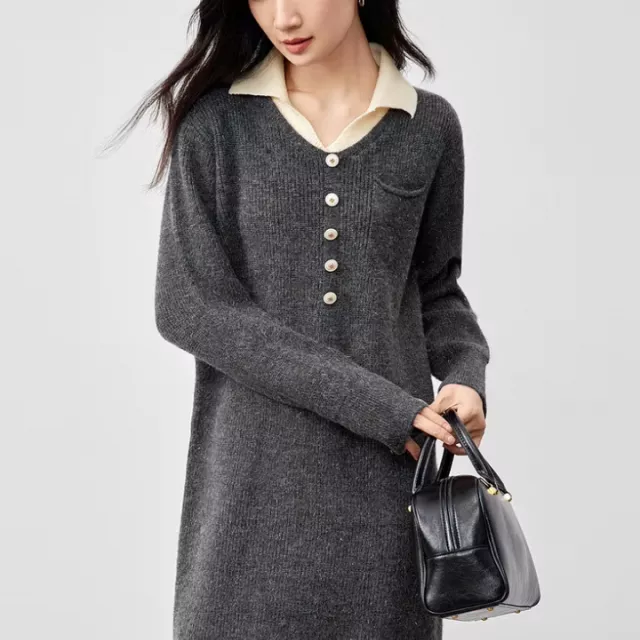 Stay effortlessly stylish and cozy this season with this elegant straight spliced knitted dress. Designed for modern women who seek a balance between sophistication and comfort, this mid-length dress features a classic turn-down collar, subtle patchwork details, and a relaxed silhouette. Whether you’re heading to work, a business meeting, or a casual gathering, this dress makes an easy statement with its refined yet comfortable design.