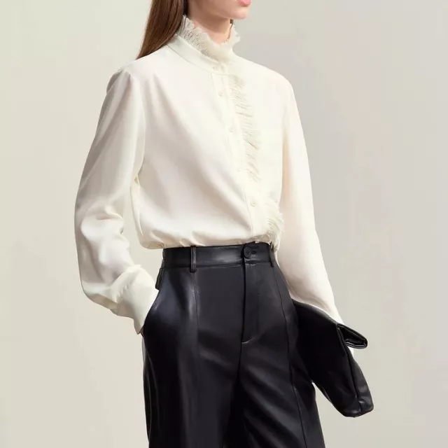 Achieve understated sophistication with this elegant chiffon blouse designed for women who value modern minimalism. Perfect for autumn and winter, this loose-fit top combines comfort with refined style. Featuring a stand collar and patchwork detailing, this blouse is ideal for work, casual outings, or an elegant dinner. Its breathable chiffon fabric ensures comfort throughout the day, while the spliced design adds a touch of uniqueness. Pair it with tailored pants for a polished look or jeans for a relaxed vibe.