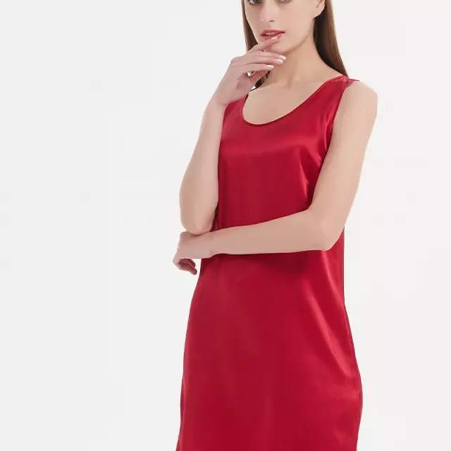 Whether you’re heading to the office, enjoying a brunch date, or attending a summer soirée, this sleeveless silk dress is your go-to choice. The minimalist design, round neckline, and A-line silhouette create a timeless look that complements any style. Available in striking red and soft pink, this dress adds a touch of class to any outfit.