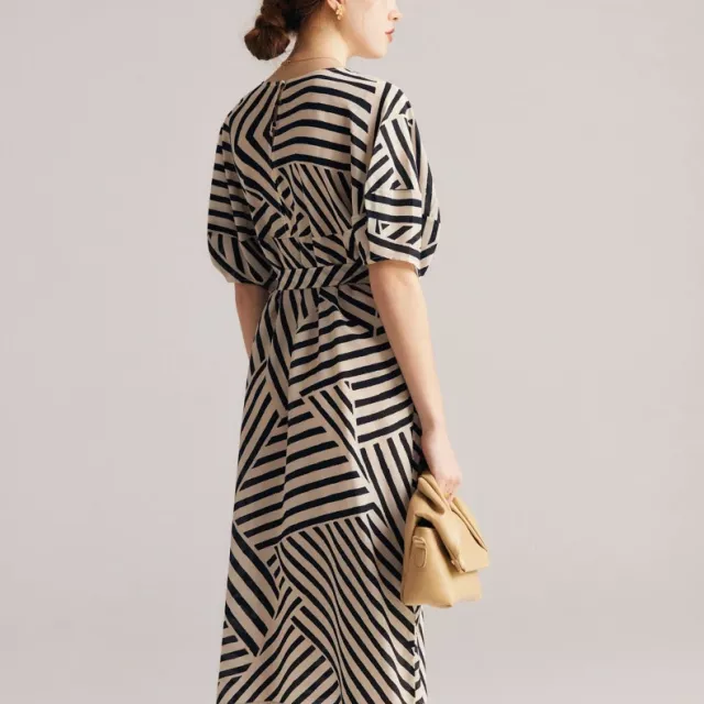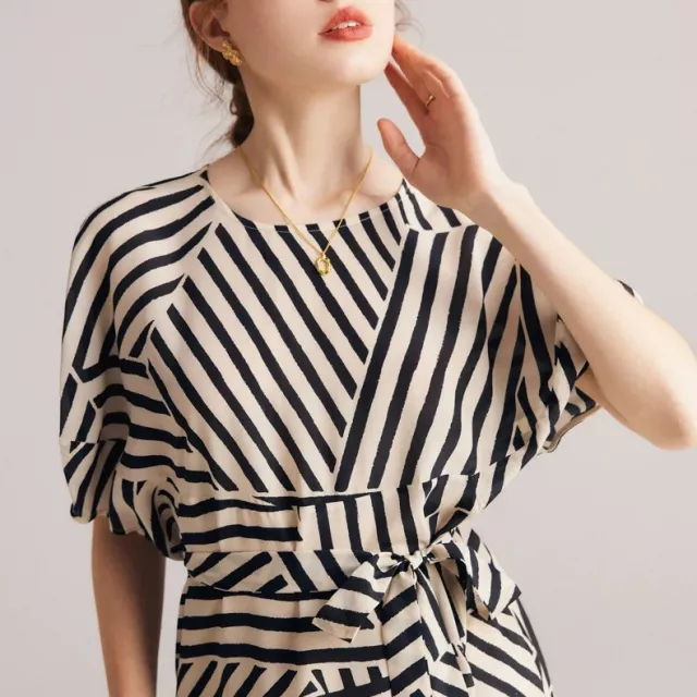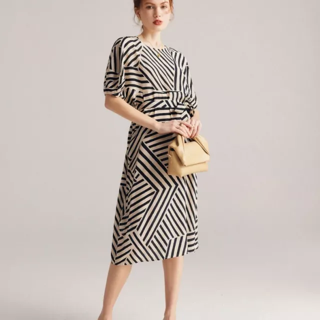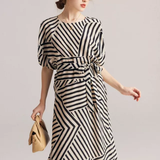 Step into sophistication with this luxurious silk striped dress, designed for women who appreciate timeless style and effortless comfort. Crafted from 100% real mulberry silk, this dress offers a smooth, lightweight feel that drapes beautifully over your body. The soft, flowing fabric enhances your natural grace, making it the perfect choice for warm spring days.