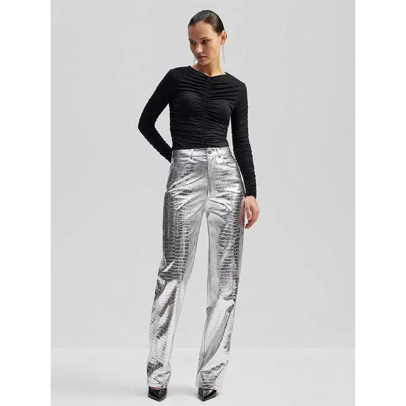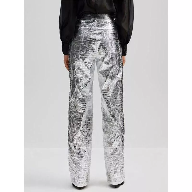Don’t miss out on the opportunity to own these exquisite pants. Their unique blend of style, comfort, and versatility makes them a must-have in your wardrobe. Elevate your fashion game with these Elegant Silver PU Leather Pants today!
