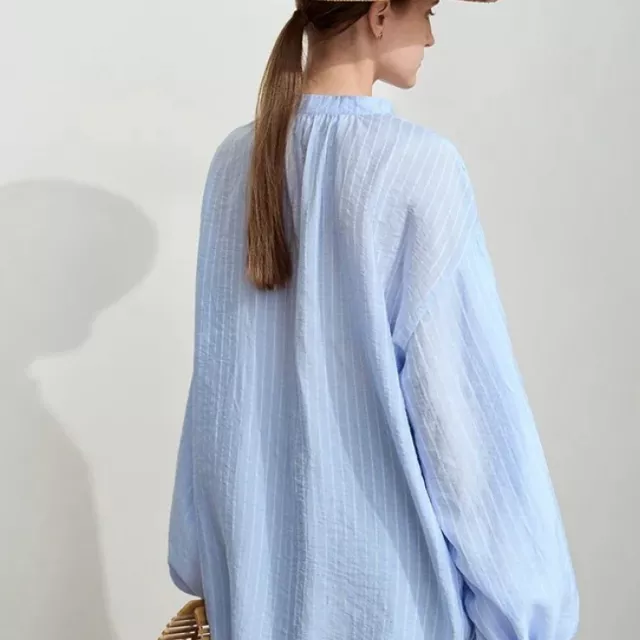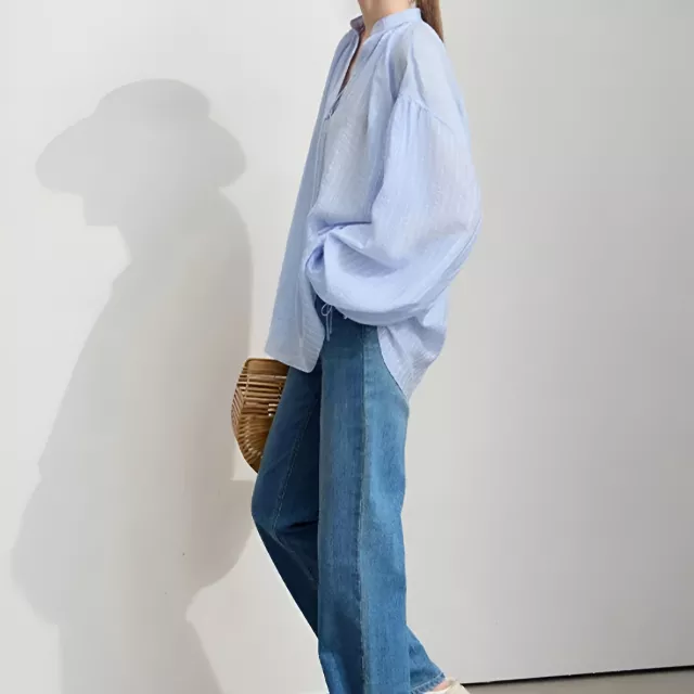 This blouse stands out for its timeless design and elegant details. The lantern sleeves and lace-up accent make it a unique and stylish piece that’s perfect for layering or wearing on its own. The loose fit ensures that it’s comfortable without sacrificing style. Whether you’re at the office or enjoying a day off, this versatile top will have you looking and feeling great.
