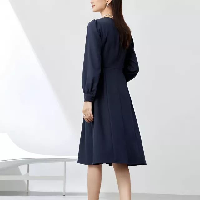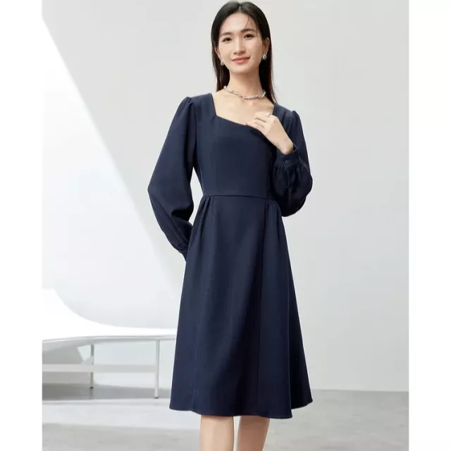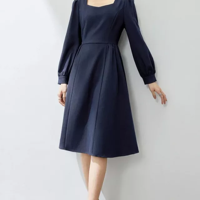 Made with high-quality polyester and spandex, this dress offers durability with a smooth, lightweight feel. The square neckline exudes sophistication, enhancing your collarbone for a polished, elegant look. Its long sleeves and knee-length design make it an ideal choice for transitioning between seasons, keeping you stylish and comfortable in spring and beyond. The hidden zipper detail adds a touch of functionality without disrupting the sleek silhouette.