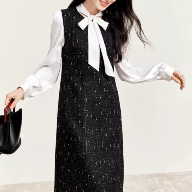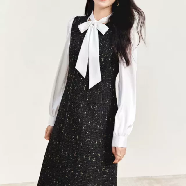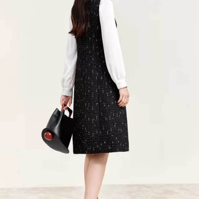 This dress is the perfect addition to your wardrobe for any season. Its tweed material provides warmth during autumn and winter while remaining breathable for indoor settings. Whether you’re heading to a corporate event, an elegant dinner, or a special occasion, this dress ensures you stand out in style.