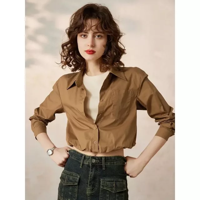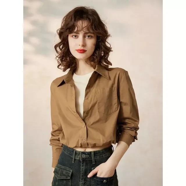 What sets this blouse apart is its innovative design that creates the illusion of wearing two pieces. This not only adds a stylish touch but also simplifies your outfit selection process. The blend of cotton and polyester ensures the blouse remains soft and breathable, while also being easy to care for. The turn-down collar and long sleeves add a touch of elegance, making it suitable for both professional and semi-formal occasions.