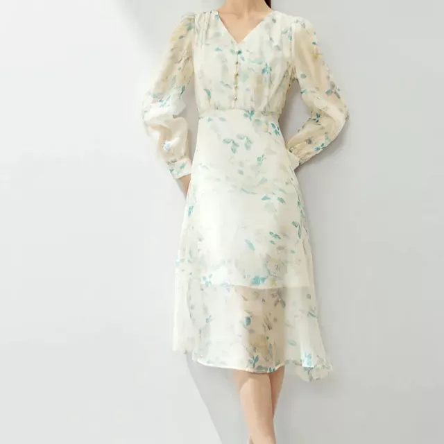 Step into timeless sophistication with this stunning V-neck print dress, designed for women who appreciate elegance with a touch of vintage charm. Featuring a flattering A-line silhouette and delicate button accents, this dress is perfect for work, special occasions, or an elegant day out. The beautiful printed design adds a fresh spring vibe, making it an essential addition to your wardrobe.