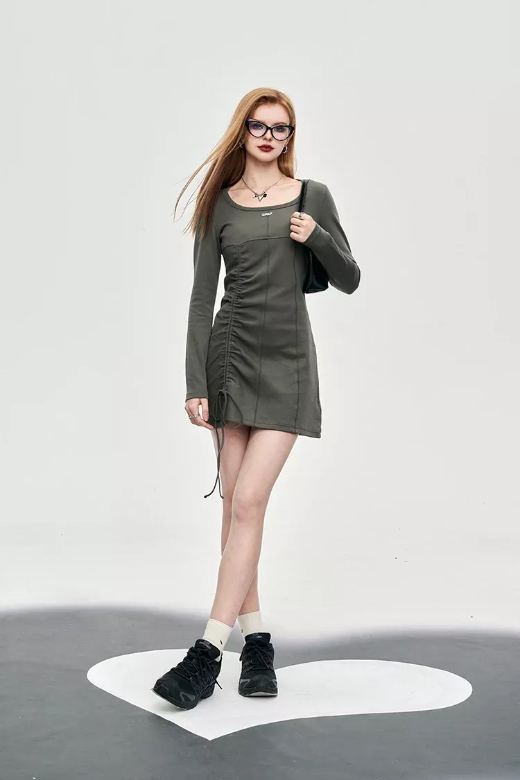 Turn heads this spring with a chic long-sleeve mini dress that blends comfort and style effortlessly. Designed with a modern high street aesthetic, this dress offers a flattering A-line silhouette that works beautifully for casual outings or stylish city strolls. The square neckline adds a unique touch, while the shirring and drawstring details provide a sophisticated yet relaxed vibe. Perfect for elevating your wardrobe with a versatile piece that celebrates timeless simplicity.