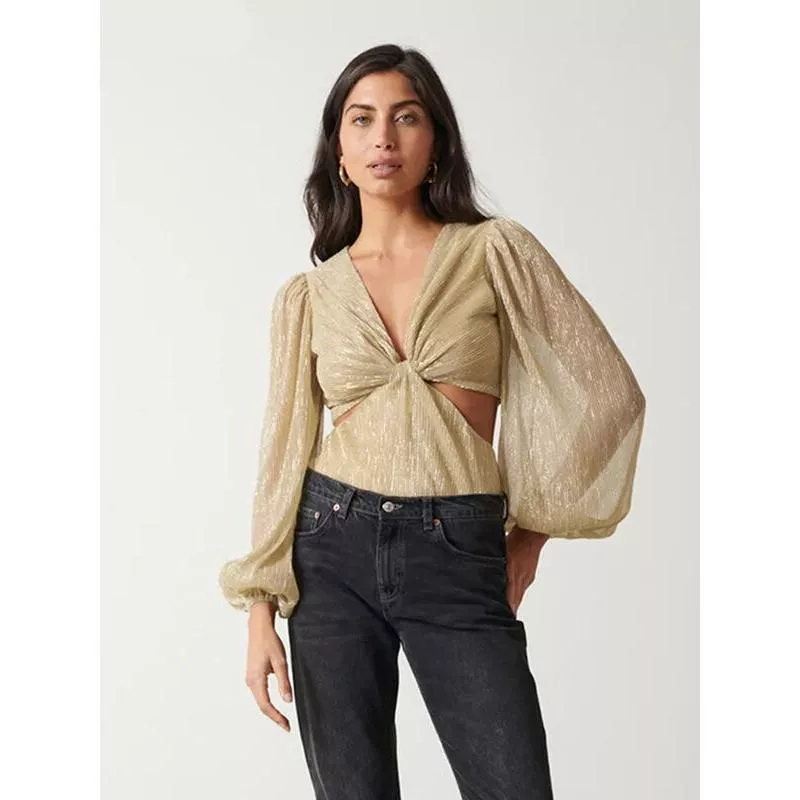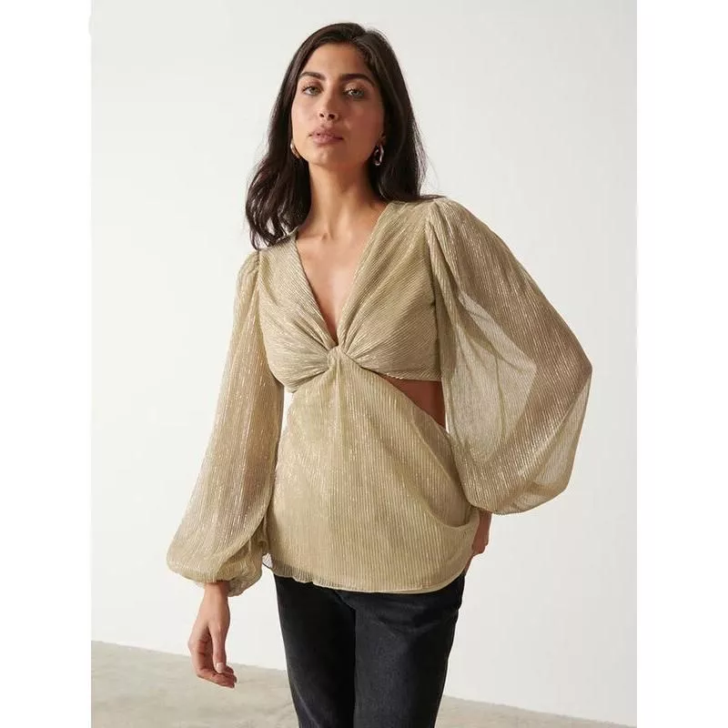 This blouse isn’t just clothing; it’s a statement of style and elegance. The sexy and club-style design is perfect for middle-aged women looking to add a touch of glamour to their wardrobe. Its unique gold pleated design sets it apart, making it a special piece for any occasion. Whether you’re at a business meeting or a night out, this blouse will ensure you stand out in the best way possible.