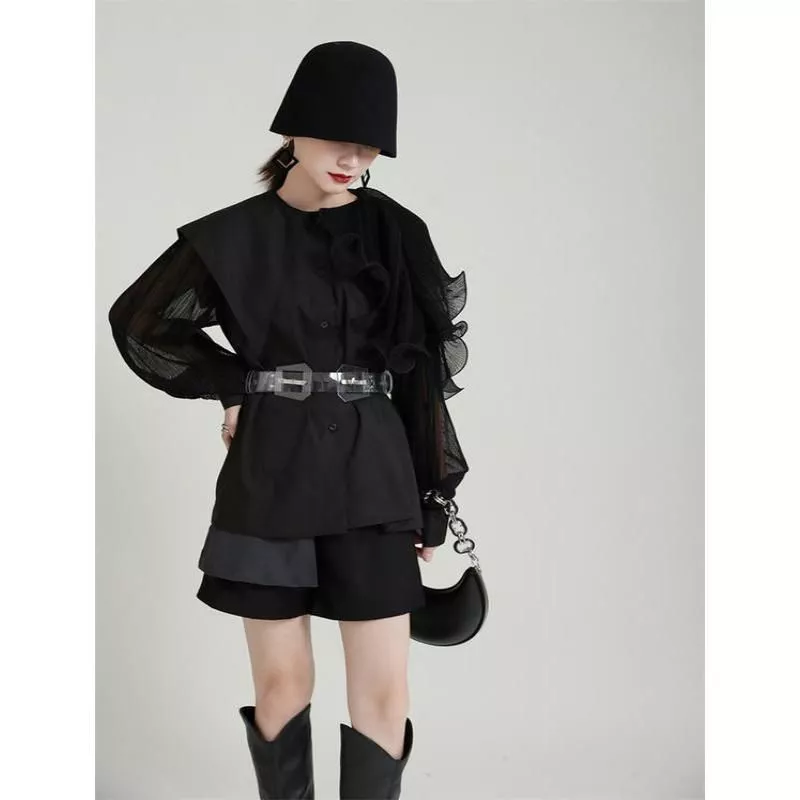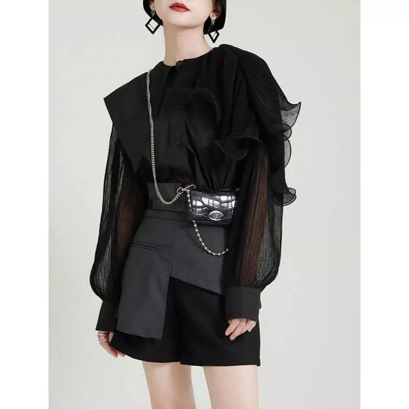 Our blouse boasts several distinctive features that make it stand out. Crafted from a blend of premium cotton and polyester, it offers both durability and comfort. The stylish turn-down collar and single-breasted closure add a touch of sophistication, while the full-length sleeves and midweight thickness make it suitable for all seasons. The solid pattern and jersey fabric type offer a sleek, modern look, perfect for the fashion-conscious woman.
