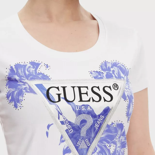 Don’t miss out on this wardrobe staple—add the Guess Women’s White Print T-shirt to your collection today and enjoy effortless style and comfort.