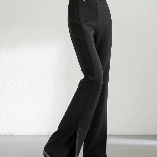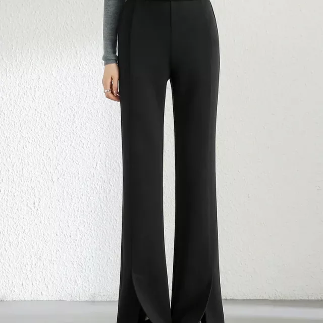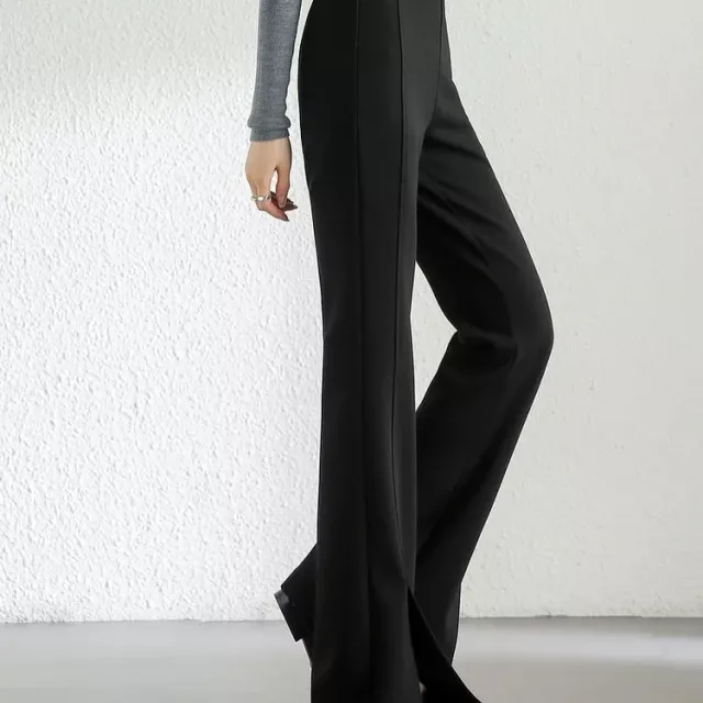 Designed with precision and crafted from a premium blend of polyester, nylon, spandex, and viscose, these pants offer the perfect balance of flexibility and structure. The high waist enhances your natural curves, while the slit-hem detail adds a trendy twist to a classic look. Medium stretch ensures a comfortable fit that moves with you, making these pants ideal for long days at the office or stylish evenings.