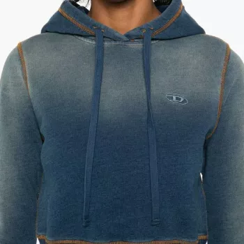 Diesel Cropped Cotton Hoodie – Navy Blue with Embroidered Oval D Logo