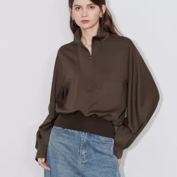 Women’s Slim Fit Zipper Hoodie Sweatshirt with Waistband and Polo Collar