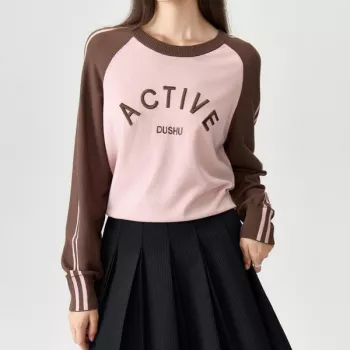 Women’s Casual Round Neck Contrast Color Raglan Sleeves Sweater