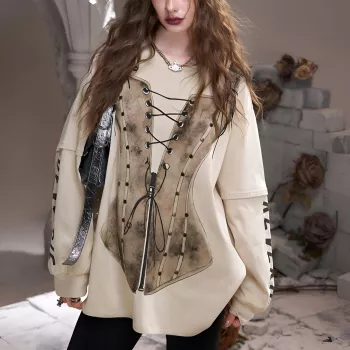 Striped Two-Piece Look Turn-Down Collar Winter Sweatshirt for Women