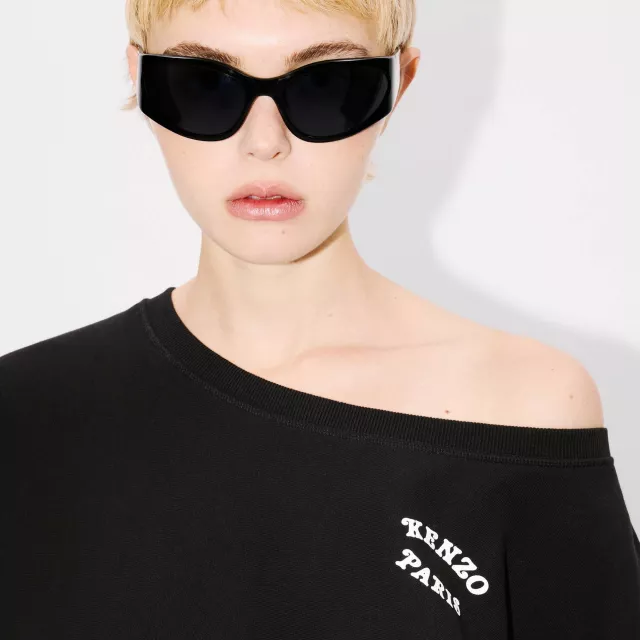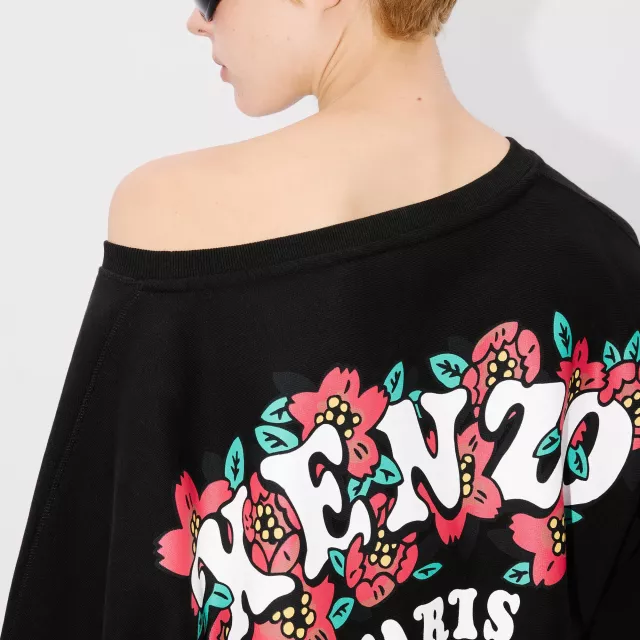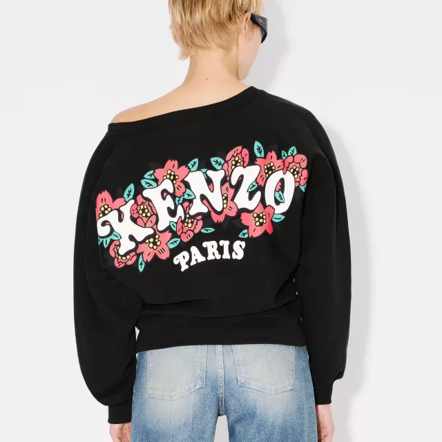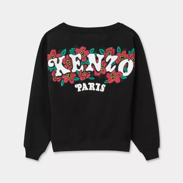 Designed with a ribbed boatneck collar, ribbed cuffs, and hem, this sweatshirt stays close to the body in all the right places while offering room to move. On the front, a clean Kenzo monogram gives it signature edge, while the back explodes with a bold maxi print in true graphic fashion. Whether you’re layering it up or wearing it solo, this piece offers a balance of classic shape and unexpected visual energy.
