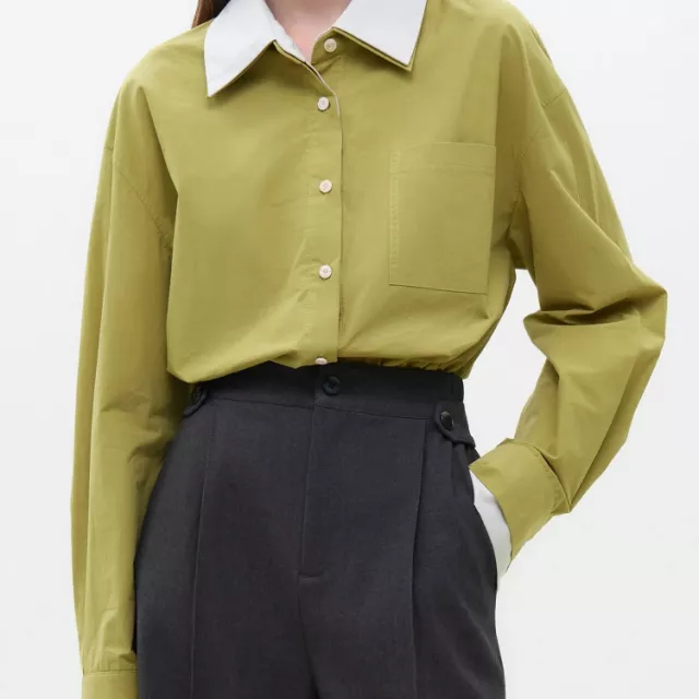 The 100% cotton fabric is soft and breathable, making this blouse the perfect choice for layering during the winter months. Its polo-neck collar adds a sophisticated element that elevates your look, while the single-breasted closure maintains a streamlined and flattering silhouette. This blouse is a must-have for any woman looking for versatile, comfortable, and stylish options for the cooler season.