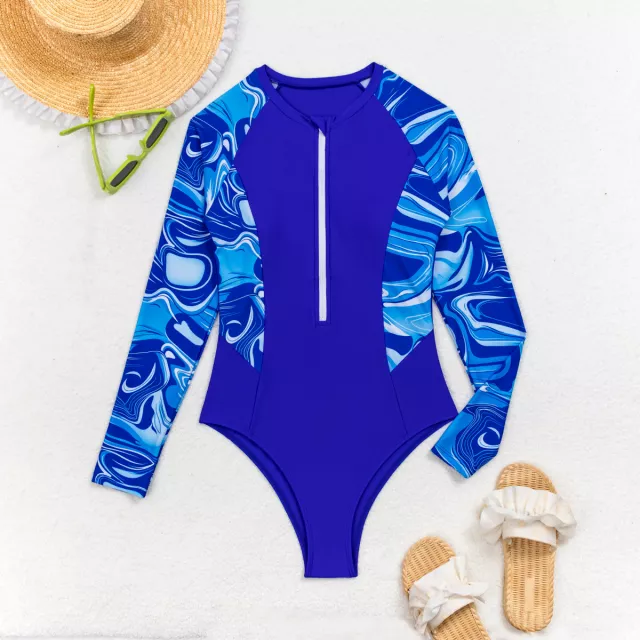 Made from a premium blend of polyester and spandex, this swimsuit offers a stretchy, breathable fit that moves with you. The long sleeves and front-zip design not only elevate the style but also provide extra sun protection—perfect for long beach days or active water sports. Choose from a range of sizes to find your perfect fit and enjoy the flattering contour this piece brings to your beachwear wardrobe.